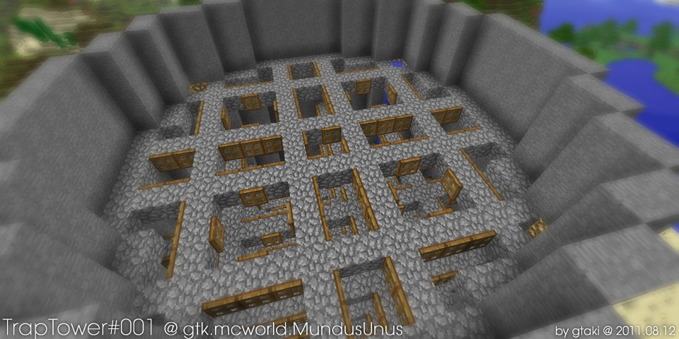 入口是雙扇門, 但沒弄同時開閉機關. 然後是木塊+原木做門框.